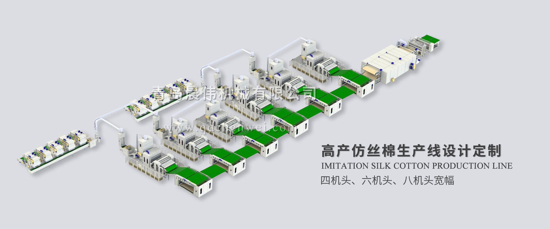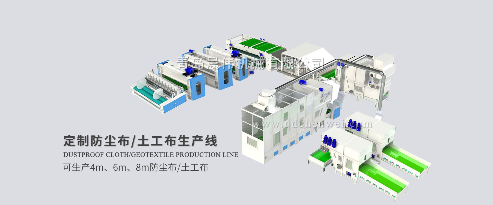 青島晨偉機(jī)械有限公司 專業(yè)設(shè)計(jì)定制各類無(wú)紡布單機(jī)設(shè)備及生產(chǎn)線。 我公司主要產(chǎn)品:電子秤重開包機(jī)、開松機(jī)、給棉機(jī)、氣壓棉箱、(高速)單錫林雙道夫梳理機(jī)、(高速)雙錫林雙道夫梳理機(jī)、鋪網(wǎng)機(jī)、中速針刺機(jī)、高速針刺機(jī)、烘箱/烘房、燙光機(jī)、熱軋機(jī)、收卷切片機(jī),無(wú)紡布設(shè)備、仿絲棉設(shè)備、防塵布設(shè)備、噴膠棉設(shè)備、無(wú)膠棉設(shè)備、硬質(zhì)棉設(shè)備、土工布設(shè)備生產(chǎn)線、椰棕床墊生產(chǎn)線、大棚保溫被生產(chǎn)線、蠶絲被生產(chǎn)線、床上用品設(shè)備等各種無(wú)紡布機(jī)械設(shè)備。