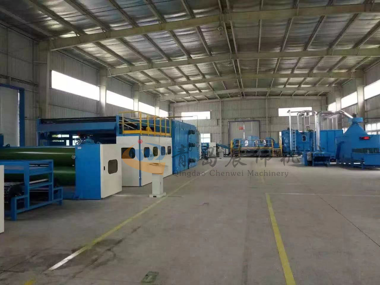 5. CWPW-鋪網機:用于將梳理纖網通過移動小車交叉折疊為所需幅寬和定量的多層纖網,以供后道工序使用。鋪網輥采用特殊結構,加裝壓網輥和導流板,不飄網不起皺,五只大功率電機精確控制各部件的運動,電動輸出簾高度調節裝置