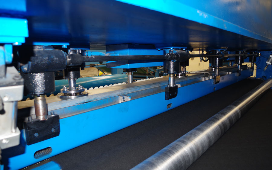 5. CWPW-鋪網機:用于將梳理纖網通過移動小車交叉折疊為所需幅寬和定量的多層纖網,以供后道工序使用。鋪網輥采用特殊結構,加裝壓網輥和導流板,不飄網不起皺,五只大功率電機精確控制各部件的運動,電動輸出簾高度調節裝置