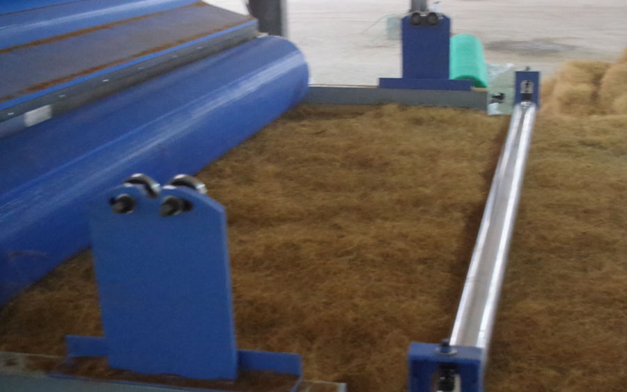 本生產(chǎn)線是利用椰棕纖維和膠水通過高溫?zé)犸L(fēng)穿透粘合定型,通過壓板機(jī)多層壓實(shí)而成,椰棕墊是床上用品、服裝家具、沙發(fā)高級的芯墊材料。