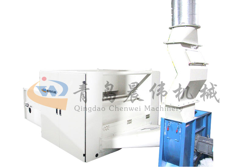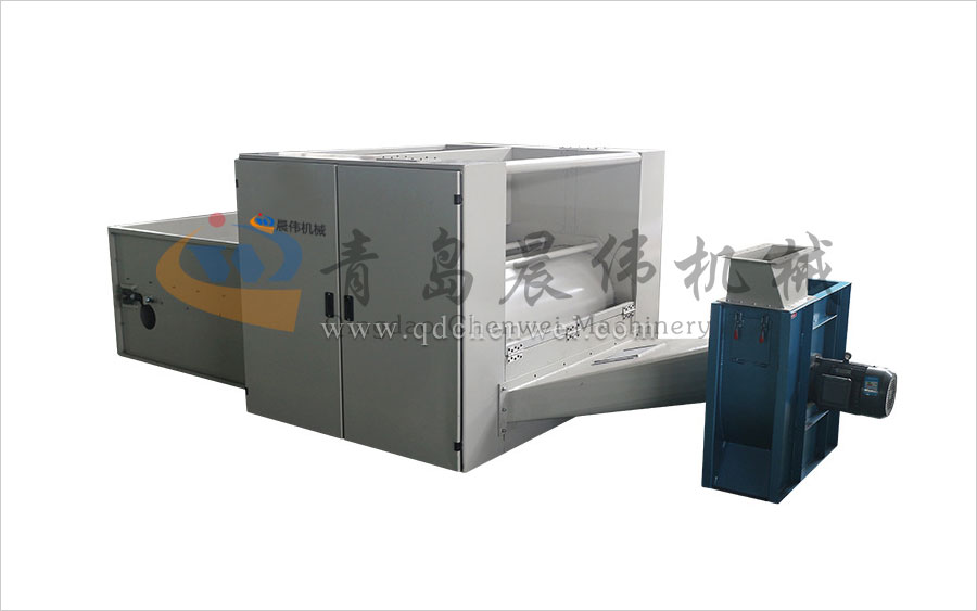 各種不同纖維被放入水平輸送簾,經壓棉輥和對輥羅拉喂入,經輸棉風機以適量的風量輸送纖維原料供后道工作使用;并配備橋式除鐵裝備。