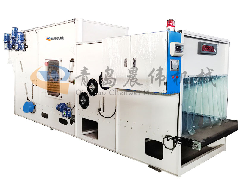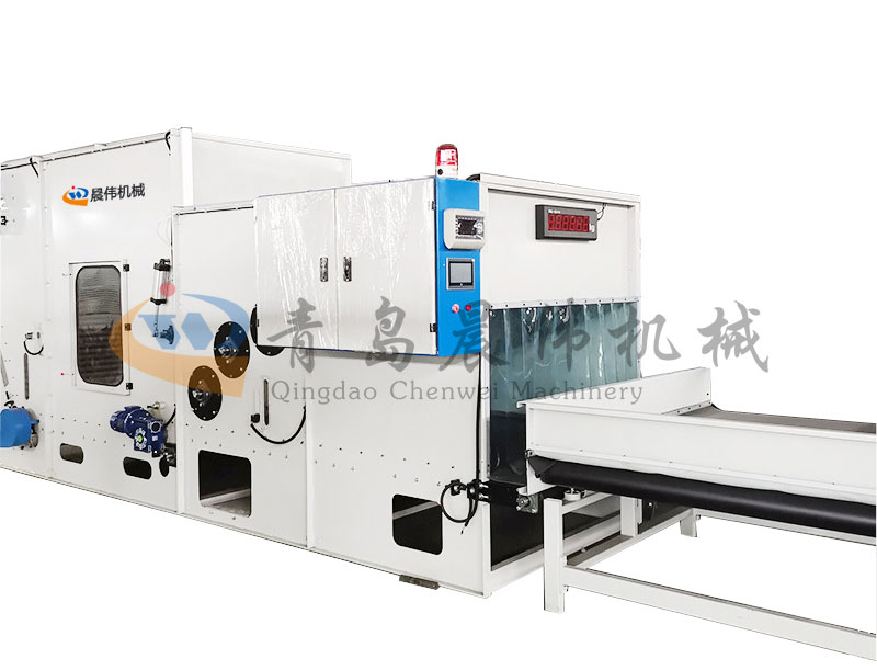 開(kāi)松各種捆包纖維,無(wú)需人工抖棉,降低勞動(dòng)強(qiáng)度,多種原料充分?jǐn)嚢瑁旌暇鶆?,混合時(shí)間可以根據(jù)需要設(shè)定,當(dāng)混合時(shí)間到達(dá)時(shí)自動(dòng)輸送到下級(jí)。